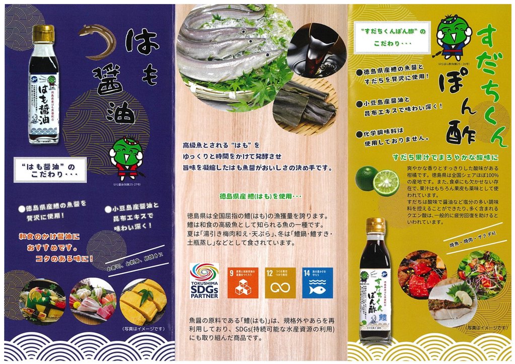 全国漁トップクラスの徳島県産の鱧の規格外やアラを積極的に使用し発酵させた魚醤をベースに作りました。私たちにできるSDGsとして「徳島SDGsパートナー制度」にも参加しています。